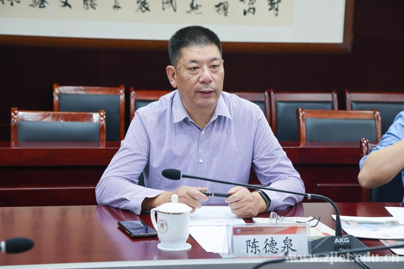 陈德泉对韩芳一行的来访表示欢迎,并从学校的历史沿革、学科建设、人才培养、产教融合等方面为切入点,详细介绍了学校基本情况。他指出,上海科学技术职业学院是上海市“双高”建设单位,拥有上海市高职院校电子商务名师工作室,专业建设优势突出,产教融合深入紧密。希望两校能够借助沪杭两地的地理优势和经济优势,在“三教”改革、专业和实训室建设、校企合作等方面加强交流对接,特别是在电子商务专业建设和师资培养上相互学习借鉴,共同抢抓职业教育新一轮改革发展机遇期,助推长三角经济圈高质量发展。